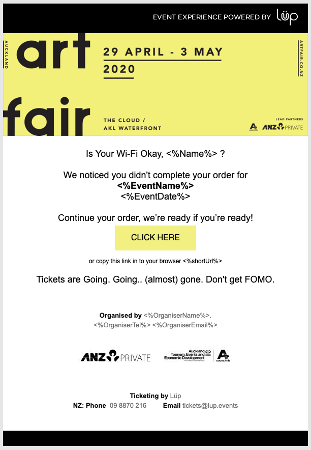 Sponsor/partner logo at the footer of the confirmation email for every ticket purchaser and reminder ticket holder.